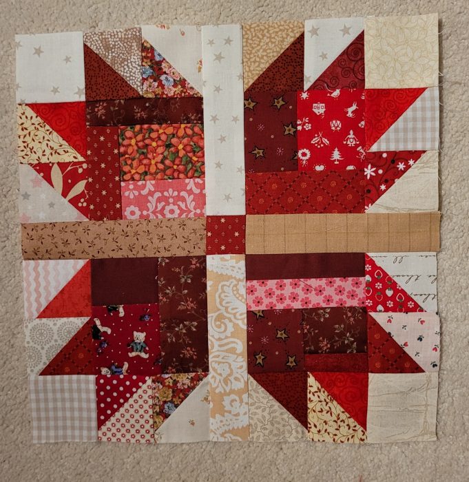 Dank einer netten Frau im Quiltsterne- Forum habe ich ein Quiltprojekt begonnen, welches ich fast verpasst hätte, den Ravenbrook- Quilt von 2024. Es sind sehr einfache Böcke, aber gerade das war wichtig für mich. Erstmal einfach einsteigen, um auch dranzubleiben. Es sind insgesamt zwölf Teile, vier davon habe ich schon bearbeitet. Einzelne Blöcke werden erst am Ende, kurz vor der Vollendung des Quilts, zusammengefügt. So bleibt das Projekt variabel. Und die Lust aufs Nähen ist zurück gekehrt. Mehrmals in der Woche gibt es kleine Portionen, das ist gut für den Anfang.