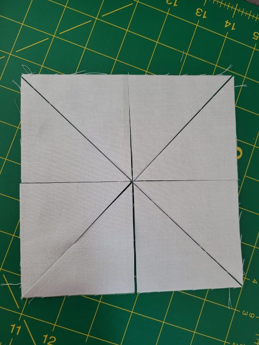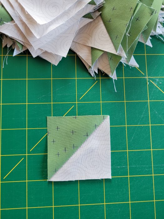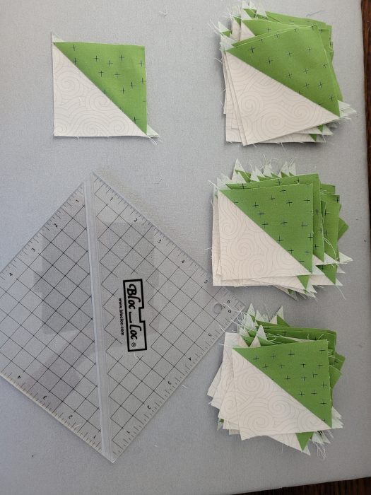 Begonnen habe ich dann mit einfachen HST’s, einer Schnellschnittmethode und meinem geliebten BloLoc- Lineal für Halbquadrate.